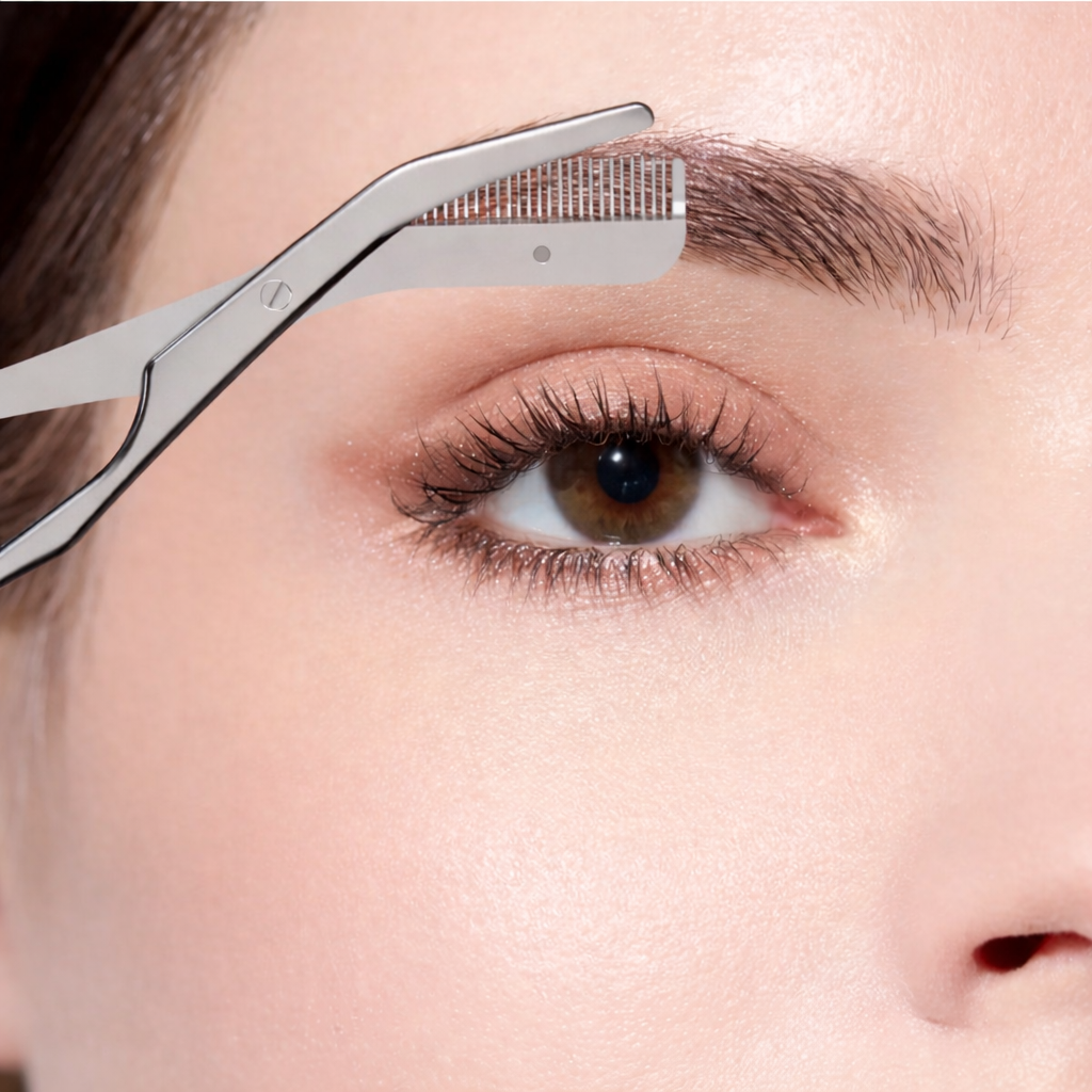 Die Augenbrauenschere mit integriertem, abgestuftem Kamm-Design ermöglicht ein gleichmässiges und kontrolliertes Kürzen der Härchen. Dadurch wird verhindert, dass zu viel abgeschnitten wird – perfekt geeignet auch für Anfänger.